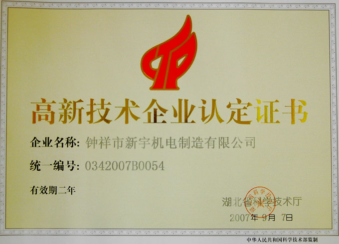 高新技术企业认定证书