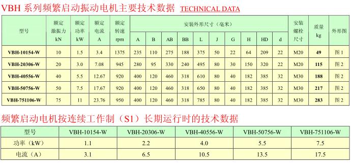 VBH系列频繁起动振动电机,功率1.5~11KW,4、6极,激振力为10~75KN,共计6个规格。