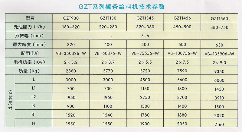 GZT系列棒条给料机是一种利用振动电机作激振源的新型给料设备,广泛用于水电行业、建筑石料、冶金矿山粗料破碎前的给料,该系列给料机在出口端有间距可调的棒条,给料的同时能将物料中的泥土和细碎粒级的物料分离出去,充分发挥后面破碎机的工效。