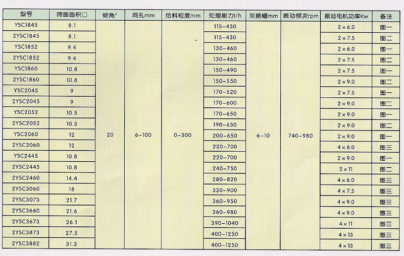 根据筛面层数和筛网面积分为单层YSC系列圆振筛(图一)、双层YSC系列圆振筛(图二)、双层双组YSC系列圆振筛(图三),根据用户需求YSC系列圆振筛可设计三层和多层结构。结构上有带受料箱和无受料箱两种结构。